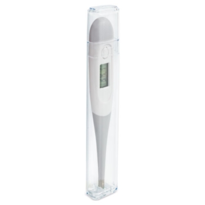 Al terminar de hacerla medición de temperatura, el termómetro pita indicandolo.Mide tanto en grados celsius como fahrenheit.Tiene una pantalla LCD de 3 dígitos con memoria de recuperación de la última medición hecha.La punta del termómetro es flexible.Se puede usar en diferentes puntos de calor: ingle, axilas y boca. Incluye Pila LR41Cada termómetro incluye estuche transparente y va presentado en una caja individual(medida caja cartón 3x13,8x2,7 cm, medida caja transparente 25x13x1,4cm)Cada termómetro incluye manual de uso en idiomas: Castellano, Inglés, Alemán, Frances, Portugues y Italiano.