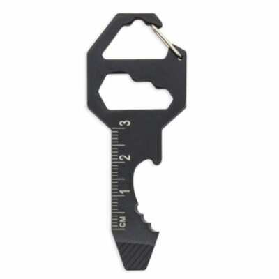 Llavero 6 funciones: 1-Mosquetón 2-Pelacables 3-Abridor 4- Regla 5-Destornillador plano 6-Llave hexagonal