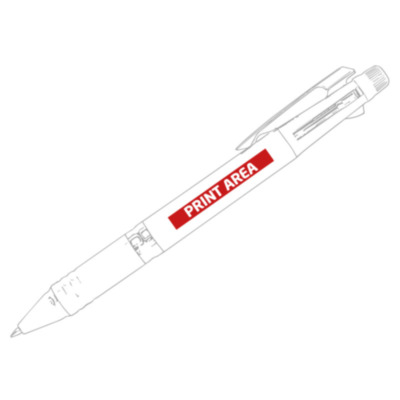 6 en 1, bolígrafo escritura azul, rojo y negro, portaminas y goma. Disponible en color negro, rojo y azul.