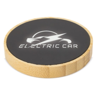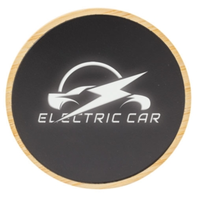 Cargador inalámbrico realizado en bambú, capacidad 15W.Conector tipo C.Recubrimiento exterior diseñadoo para marcar en láser y así su publicidad quedará iluminada con una luz blancaCada pieza en caja individual, incluye cable tipo CCompatible solo son dispositivos con carga inalámbrica Qi.