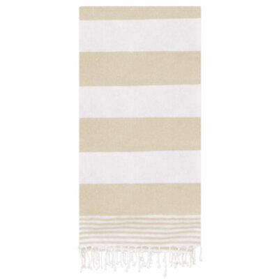 Descubra nuestra nueva colección de toallas pareo, con una gran variedad de colores que le permitirán adaptarse a su imagen corporativa. Imagine el logo de su empresa extendido en la arena de una playa paradisíaca, o en una piscina de lujo. La toalla pareo con rizo “Cala Bonita” (T-269) está realizada 100% en algodón en su exterior con un diseño a rayas disponible en gris y en rojo-azul. Su interior presenta una toalla de rizo, 100% poliéster. El acabado de flecos trenzados en los extremos le aporta un toque original y actual.