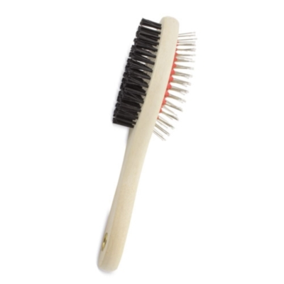 El cepillo DUO TOBY es un cepillo para mascotas de doble función, pensado y diseñado para obtener el mejor cuidado del pelo de su mascota.La cara de cerdas suaves de fibra sintéticas sirve para alisar y dar brillo a la capa superior del manto, eliminando restos de polvo o suciedad superficiales.Su otra cara presenta púas metálicas con terminación redondeada para proteger la piel mientras se accede a capas interiores ayudando a desenredar y estructurar el pelo.Indicado para mascotas de pelaje largo, rizado y lanudo con un manto interior grueso. Apto para utilizar con regularidad.Su estructura está realizada en madera, y presenta un orificio tachonado para colgar.