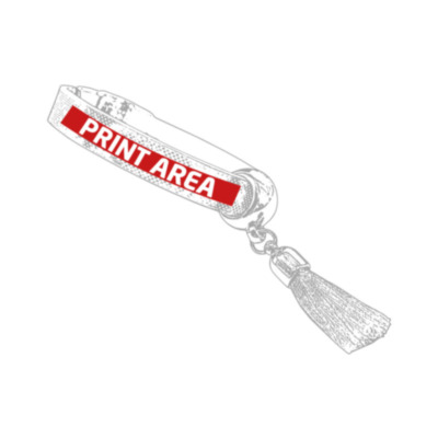 La pulsera "Alba" presenta un diseño moderno con estampado holográfico, que refleja multitud de colores y destellos brillantes.Su cierre y aplique decorativo de pompóm tiene un acabado dorado.Disponible en cuatro colores; Azul, Blanco, negro y rosa.