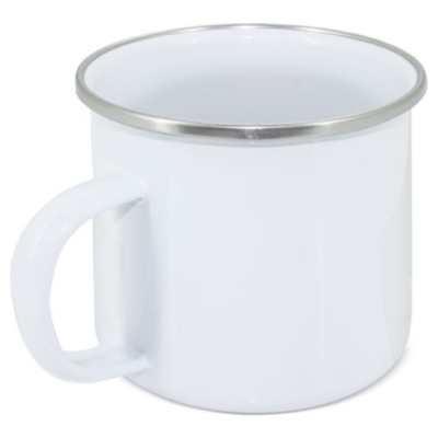 Borde metálico color plata.Capacidad 380 ml.Metal lacado especial sublimación