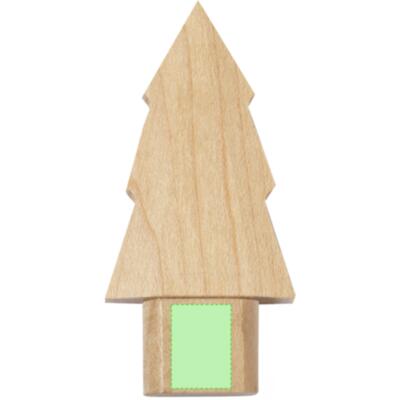 Memoria USB de 16GB de capacidad fabricada en suave madera. Distintivo diseño de pino con cierre de capucha.Elaborado con elementos vegetales para fomentar así la utilización de materias primas naturales y reducir las emisiones contaminantes.