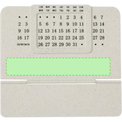 Calendario perpetuo fabricado en caña de trigo. Con soporte plegable.La caña de trigo fomenta la utilización de materias primas naturales, reduciendo así las emisiones contaminantes.