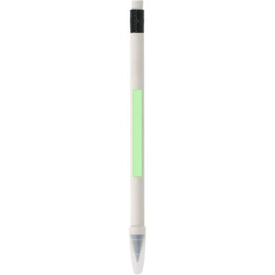 Lápiz eterno fabricado con cartones de leche reciclados. Reutilizable y con escritura infinita. Incluye goma de borrar en la parte superior del lápiz y capucha de protección. De color blanco, con detalles en negro. Con distintivo de cartón de leche reciclado en el cuerpo.Los cartones de leche se componen en su mayor parte de cartón y aluminio. Durante su proceso de reciclado, se separan los distintos materiales del envase para su reutilización y nuevo uso, contribuyendo así a recorrer el camino infinito de la economía circular. Este material se caracteriza por su alto grado de reciclabilidad, así como por su ligereza y resistencia.