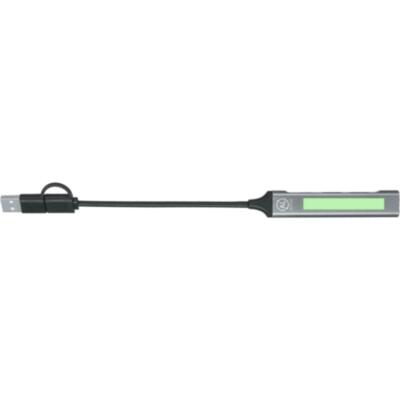 Puerto USB fabricado en Aluminio Reciclado. Con conexión dual USB/Tipo C y 4 puertos: 1 conexión Tipo C 3.0 y 3 puertos USB. Con distintivo Aluminio Reciclado. El aluminio reciclado es un material con posibilidades de reciclaje casi infinitas, sin perder sus propiedades originales y consumiendo menos energía en este proceso. Certificación GRS (Global Recycled Standard / Estándar de Reciclaje Global), que garantiza el origen reciclado del material usado para fabricar el producto.