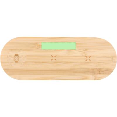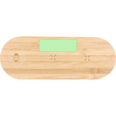 Multicargador inalámbrico de 15W fabricado en bambú. Diseñado para la carga simultánea del smartphone, auriculares y smartwatch: una estación de carga todo en uno, versátil y con indicadores luminosos de carga en parte trasera.Materiales como el bambú fomentan la utilización de materias primas naturales, reduciendo las emisiones contaminantes. Proviene de una planta de gran resistencia y versatilidad, con crecimiento y regeneración rápidos, siendo una excelente alternativa al uso de madera tradicional.Fabricado conforme a los estándares RoHS y en cumplimiento con los siguientes requisitos de seguridad:Sistema de protección contra sobrecalentamiento. Sistema de protección contra sobrecarga. Sistema de bloqueo para evitar cortocircuitos.