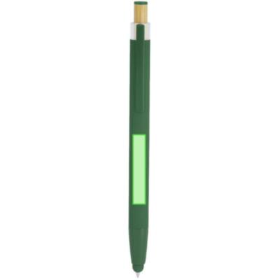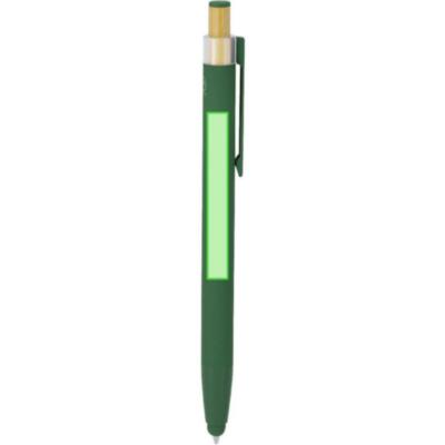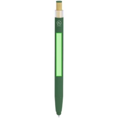 Bolígrafo puntero fabricado en aluminio reciclado. Cuerpo en acabado gomoso. Diseñado con pulsador en bambú y detalle superior a juego con el color del cuerpo y clip metálico a tono. Mecanismo pulsador. Incluye distintivo aluminio reciclado. El aluminio reciclado es un material con posibilidades de reciclaje casi infinitas, sin perder sus propiedades originales y consumiendo menos energía en este proceso. Certificación GRS (Global Recycled Standard / Estándar de Reciclaje Global), que garantiza el origen reciclado del material usado para fabricar el producto. Materiales como el Bambú fomentan la utilización de materias primas naturales reduciendo las emisiones contaminantes. Además, el bambú proviene de una planta de gran resistencia y versatilidad, con crecimiento y regeneración rápida, siendo una excelente alternativa al uso de madera tradicional.