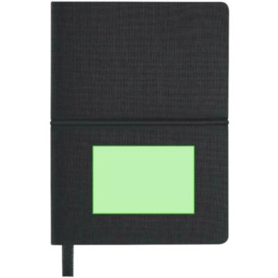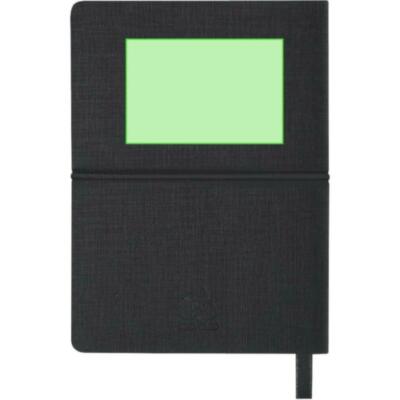 Bloc de notas con cubiertas en PU Recliclado. Tapas flexibles, con correa de cierre elástica y marcapáginas a color. Cuenta con 80 hojas en color crema con disposición a rayas. Incluye 25 notas adhesivas medianas en color amarillo y 125 mini-notas adhesivas en diversos colores. Incluye distintivo PU Reciclado. El PU Reciclado destaca por su resistencia y elasticidad. Este material reciclado y reciclable es una opción sostenible que rescata las fibras desechadas en los procesos de fabricación, minimizando así el desperdicio de material y contribuyendo a su vez a reducir el impacto ambiental, manteniendo a la vez sus propiedades originales.