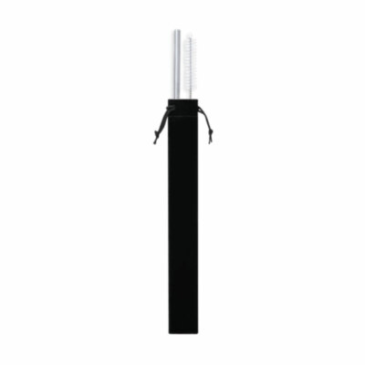 Juego de pajita reutilizable en acero inox. Con accesorio cepillo limpiador incluido y presentada en estuche de suave microfibra con cordones ajustables para mejor cierre.