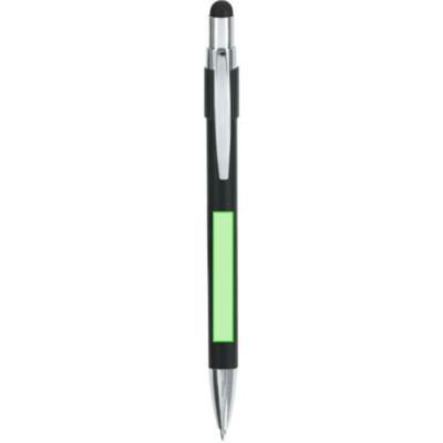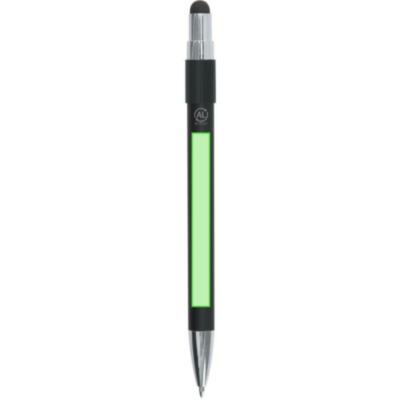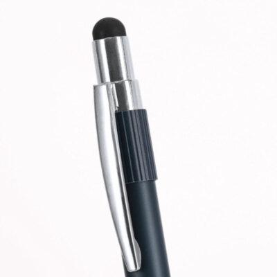Elegante bolígrafo puntero de Aluminio Reciclado. Con mecanismo pulsador de acabado mate y puntero en la parte superior en negro, en tinta azul. Clip y accesorios en acabado cromado. Incluye sistema spinner antiestrés. Con logo de Aluminio Reciclado grabado.