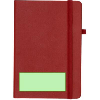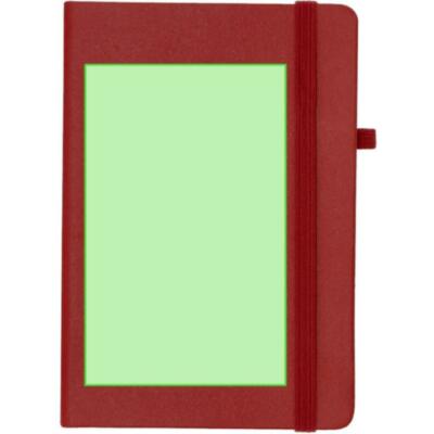 Bloc de notas con cubiertas rígidas y elaborado en PU Reciclado. Con práctico, soporte para bolígrafo, marcapáginas y cinta elástica de cierre a juego. Incluye 100 hojas color crema con disposición a rayas. Con distintivo de PU Reciclado.La PU Reciclado destaca por su resistencia y elasticidad. Este material reciclado y reciclable es una opción sostenible que rescata las fibras desechadas en los procesos de fabricación, minimizando así el desperdicio de material y contribuyendo a su vez a reducir el impacto ambiental, manteniendo a la vez sus propiedades originales.