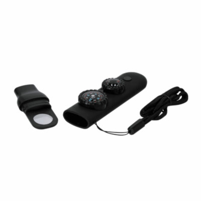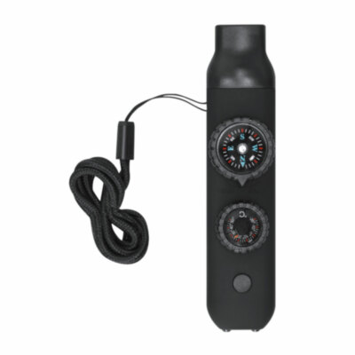 Silbato de supervivencia fabricado en resistente ABS con acabado gomoso. Integra 6 funciones esenciales:- Brújula de 2,55 cm de diámetro, con indicaciones de Norte, Sur, Este y Oeste.- Silbato de alta potencia, ideal para emitir señales de emergencia.- Termómetro con rango de temperaturas de -20 ºC a 50 ºC.- Lupa de 2 cm de diámetro, perfecta para observar detalles pequeños o incluso para encender fuego mediante concentración de luz solar.- Espejo, incorporado en la parte inferior de la brújula.- Linterna con 2 LEDs y botón de encendido/apagado en la parte superior.Incluye un práctico cordón para facilitar su transporte, ideal para llevarlo cómodamente colgado al cuello.