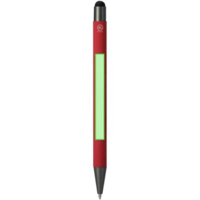 Bolígrafo puntero de mecanismo pulsador fabricado en aluminio reciclado. Pulsador y clip metálico en acabado gun metal, acabado en puntero a juego. Cuerpo terminación en goma, especialmente diseñado para marcaje en láser. Distintivo aluminio reciclado en la parte superior del bolígrafo. De cartucho jumbo y en tinta azul.El aluminio reciclado es un material con posibilidades de reciclaje casi infinitas, sin perder sus propiedades originales y consumiendo menos energía en este proceso.
