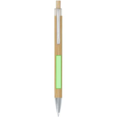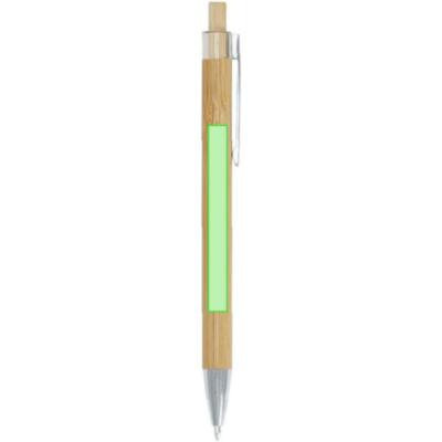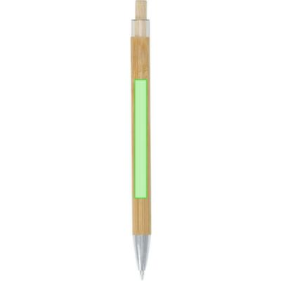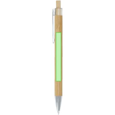 Bolígrafo fabricado en bambú. Diseñado con pulsador en bambú juego con el cuerpo, y clip y punta metálica. Mecanismo pulsador.