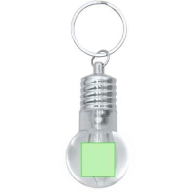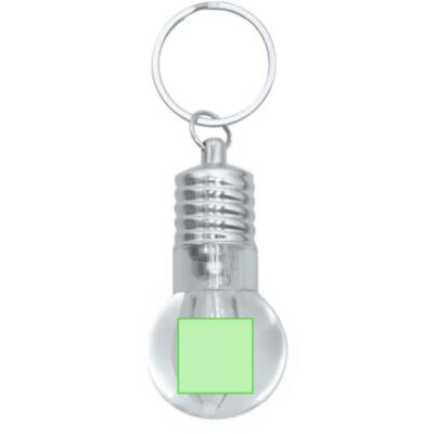 Llavero linterna con original diseño en forma de bombilla. Con 1 LED alimentado con pilas de botón (incluidas) con botón on/off en lateral y elementos decorativos y anilla cromados.