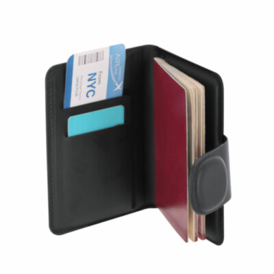 Funda pasaporte localizador inteligente con elegante diseño en PU. Con sistema de conexión dual, compatible con Apple Find My y Android Find Hub, el cual te permite rastrear tus pertenencias en tiempo real, de forma rápida y precisa. Con cierre magnético para mayor seguridad. Pila de botón incluida.
