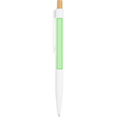 Bolígrafo fabricado en bambú y ABS. Cuerpo en acabado birllante. Diseñado con pulsador en bambú. Mecanismo pulsador. Especialmente diseñado para impresión digital