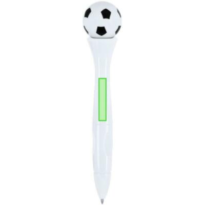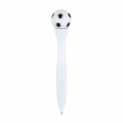 Bolígrafo antiestrés de mecanismo giratorio y diseño de balón de futbol. Cuerpo en acabado sólido brillante. Con tinta azul.