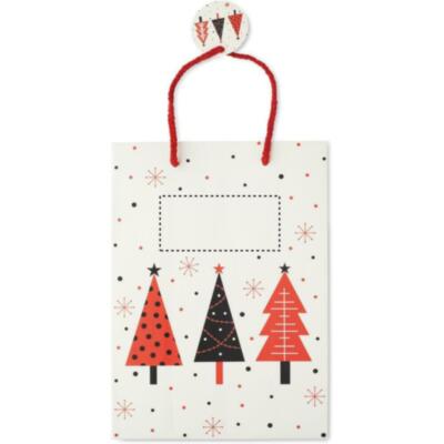 Bolsa de papel de regalo mediana de Navidad (30% reciclado) con etiqueta incluida. 150 gr/m². FSC®-certified | FSC MIX, P5.3, FSC-C213206