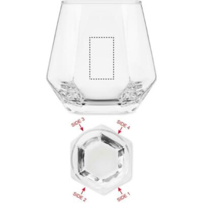 Vaso corto inclinado en forma de rombo geométrico. Para whisky u otros licores. Capacidad: 300 ml.