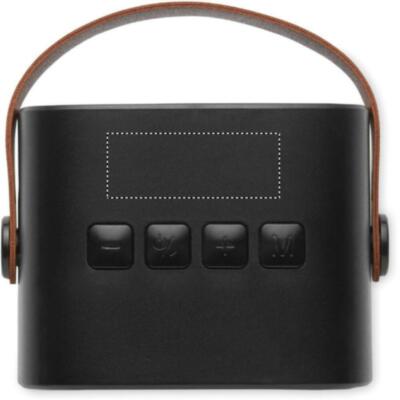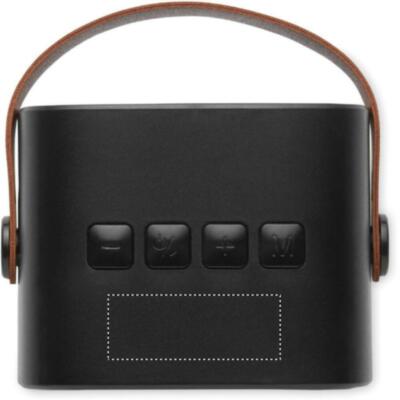 Altavoz inalámbrico 5.0 en ABS reciclado con asa de PU. incluye 1 batería recargable Li-ION de 500 mAh. Incluye un puerto para tarjetas SD y un cable AUX/USB. Datos de salida: 5W, 3 Ohm y 5V. Tiempo de reproducción aprox. 4h.