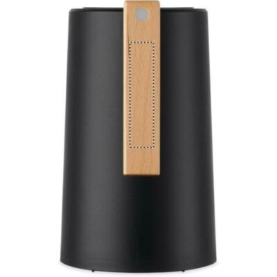 Jarra con doble pared aislante, fabricada en acero inoxidable reciclado (90 % acero inoxidable reciclado y 10 % acero inoxidable) en el interior y PP en el exterior, con asa de madera. Capacidad: 1 l.