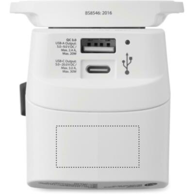 SKROSS® PRO USB: adaptador universal de 3 polos con conexión a tierra con USB-A (20 W) y tipo C (30 W). Seguro, potente e ideal para cargar todos los dispositivos en Europa y fuera de ella.