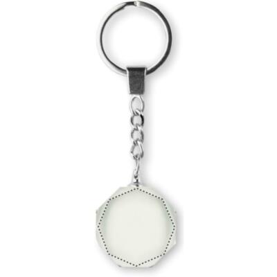 Llavero redondo de cristal para premios. Presentado en caja de regalo.