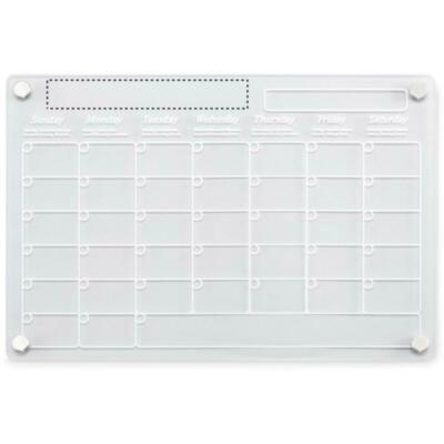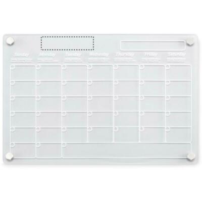 Agenda planificadora mensual acrílica magnética en tamaño A4 con 3 rotuladores magnéticos borrables (negro, rojo y blanco). Incluye tornillos para el montaje.