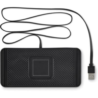 Cargador inalámbrico para coche 15W , almohadilla antideslizante de PVC. Ajustable, los bordes se pueden cortar para adaptarse al tamaño. Cable USB A integrado, longitud 120 cm