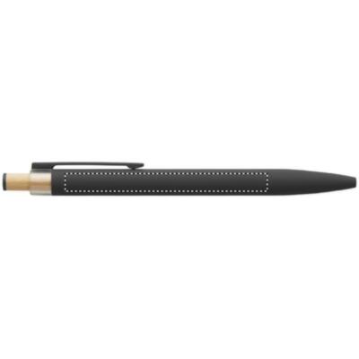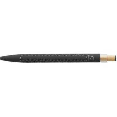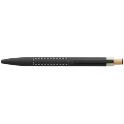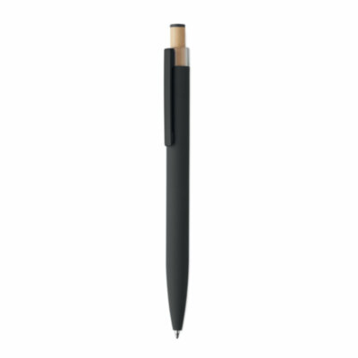 Bolígrafo de aluminio reciclado con pulsador de bambú con detalle de color a juego y clip metálico a juego. Tinta azul.
