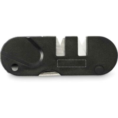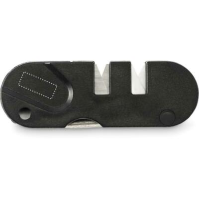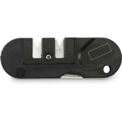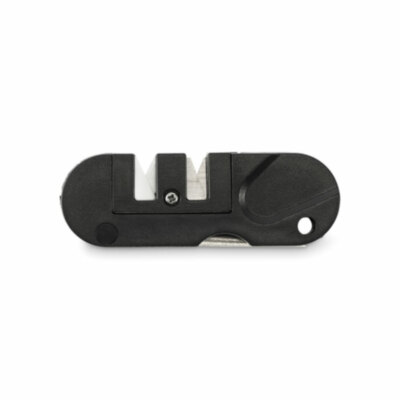 Afilador de cuchillos de bolsillo en ABS. Incluye 1 cuchilla de cerámica para acabado y pulido, 1 cuchilla de carburo de tungsteno para afilado rápido y reparación de cuchillas dañadas y 1 varilla de diamante cónica para filos dentados, gubias y afilado.