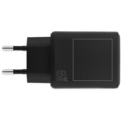 Cargador/adapador de pared GaN UE de 2 polos con carga rápida de 65 W, 1 puerto USB-A y 1 puertos Type-C. Compatible con la tecnología Power Delivery. No apto para uso en el Reino Unido.