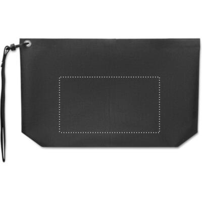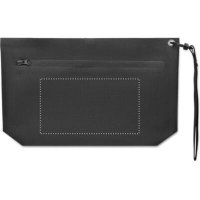 Bolsa para objetos personales o documentos en RPET 300D y revestimiento de PVC con correa. Tejido resistente al agua.