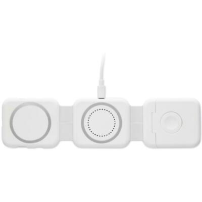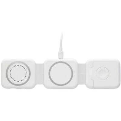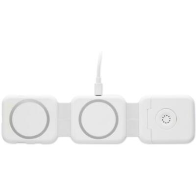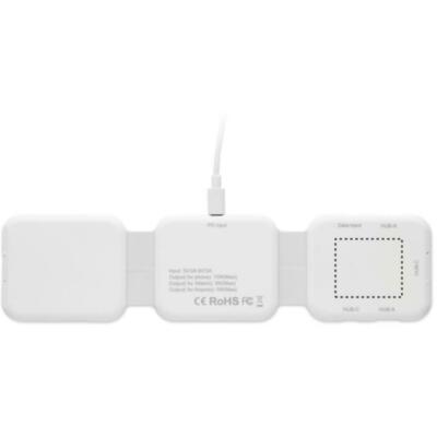 Base de carga magnética ABS. 3 puntos de carga inalámbrica. 1 x 15W, 1 x 5W para TWS y 1 cargador Apple watch (3W). 2 HUBS Tipo-C y 2 USB-A. Entrada de cable integrada: conector de Tipo-C a USB-A.