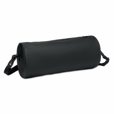 Bolsa de deporte en RPET 300D con revestimiento de PVC. Dispone de tirantes desmontables y ajustables. Tejido resistente al agua. Capacidad 6L