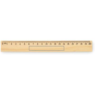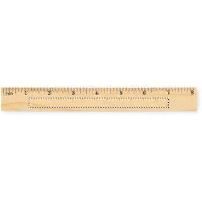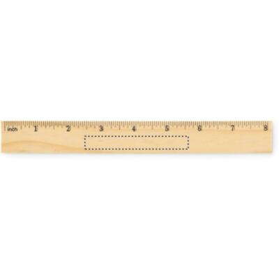 Regla de madera de pino de 20 cm con escala en centímetros por un lado y en pulgadas por el otro.