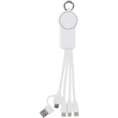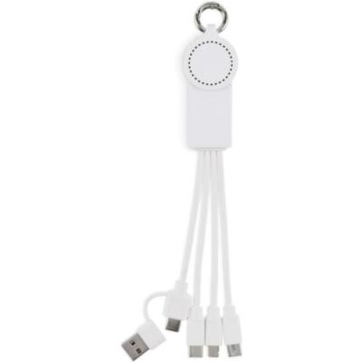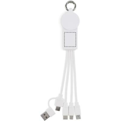 Llavero con cable de carga con entrada: 2 en 1 tipo-C y tipo-A. Salida: Carga de reloj (Samsung® y Apple®), 2 x tipo-C y micro-B (2 en 1 clavija). Cable de TPE reciclado.