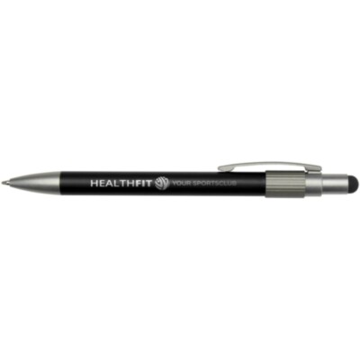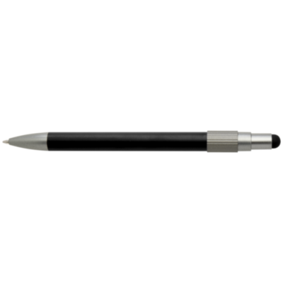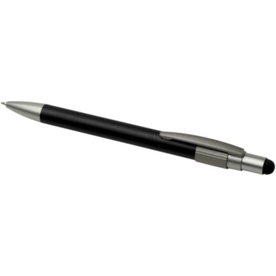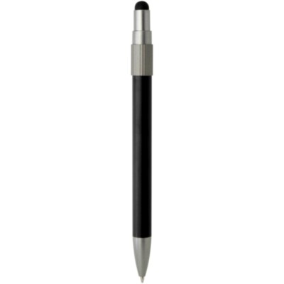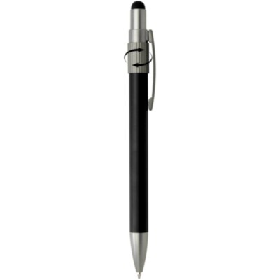 Bolígrafo con punta stylus y juego giratorio, que combina la practicidad con un diseño divertido. El bolígrafo está fabricado en aluminio reciclado con certificado RCS y cuenta con un suave mecanismo a presión y una punta stylus para su uso en pantallas táctiles. El juego giratorio incorporado en la parte superior le da un toque antiestrés (basta con moverlo para activarlo). Color de la tinta del bolígrafo: azul. Longitud de escritura: 1000 metros.