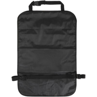 Organizador para el asiento trasero del coche con múltiples bolsillos de malla para guardar objetos esenciales como tentempiés, juguetes o cantimploras, además de una ventana de PVC para una tableta. Se fija con facilidad al asiento delantero y ayuda a mantener el coche ordenado. Es ideal para familias, viajes por carretera o uso diario.