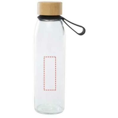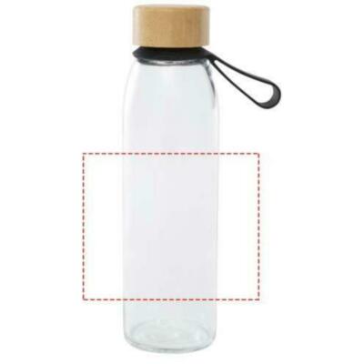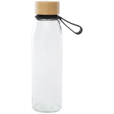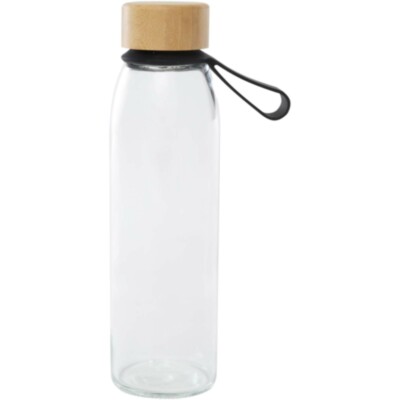 Botella de vidrio de una sola pared con tapón de rosca de bambú procedente de fuentes más sostenibles y socialmente responsables. Viene con una cómoda correa de silicona para facilitar su transporte. Se presenta en una caja de regalo de cartón reciclado. Capacidad: 500 ml.