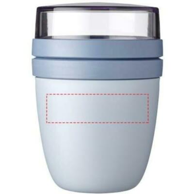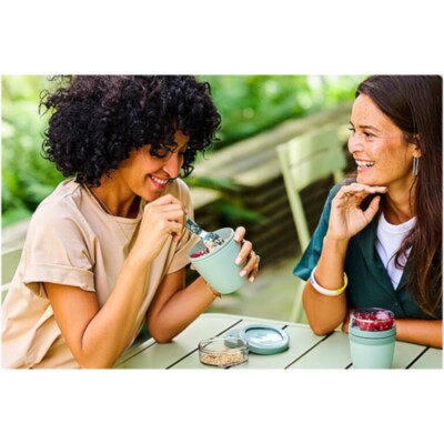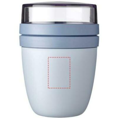 La fiambrera "Ellipse Mini" es perfecta para una gran variedad de aperitivos, como yogur con muesli o sopa con picatostes. Dispone de dos ingeniosos compartimentos en un recipiente resistente, lo que permite mantener los ingredientes perfectamente separados. Su tamaño compacto la hace ideal para llevarla en la mochila del colegio y disfrutar de una comida rápida y práctica. El recipiente superior transparente tiene una capacidad de 120 ml, ideal para unos 50 gramos de muesli o fruta, y el inferior tiene una capacidad de 300 ml. Apto para lavavajillas y hermético. Sin BPA.