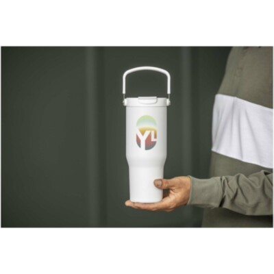 Vaso con aislamiento al vacío de cobre de acero inoxidable reciclado certificado RCS de 900 ml y con tapa de doble función "Bronx"