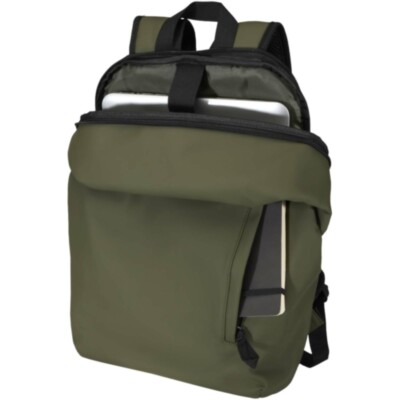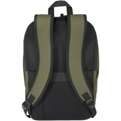Esta mochila antirrobo de 15", fabricada en piel de poliuretano reciclado de primera calidad con certificación GRS y forro de RPET a juego, mantiene tus pertenencias protegidas y secas durante los desplazamientos. Cuenta con un compartimento de acceso trasero para el portátil, dos bolsillos laterales aerodinámicos y un bolsillo frontal con cremallera impermeable. Un panel trasero transpirable garantiza la comodidad durante todo el día, por lo que es ideal para desplazamientos, viajes o aventuras urbanas. Capacidad: 18 litros.