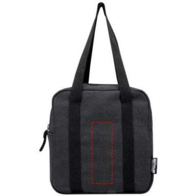 Fabricada en lona reciclada e hidrófuga con certificado GRS y aislamiento de lámina de aluminio de alta calidad, la nevera "Recanvas" proporciona un amplio espacio para tus comidas, ya sea para el trabajo, la escuela o un pícnic en el parque. Está equipada con cómodas asas para facilitar su transporte. Capacidad: 5 litros.