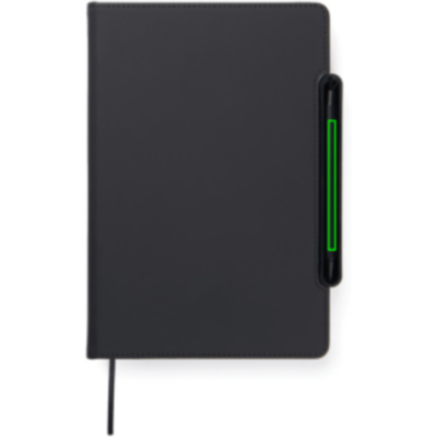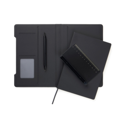 Descubre la libreta multifuncional definitiva, diseñada para tu día a día. Esta inteligente solución 4 en 1 combina practicidad, flexibilidad y diseño. Fabricada con papel reciclado con certificación RCS y cubierta con el clásico revestimiento de PU mate Baltimore, lo que la hace tan atractiva visualmente como funcional. Una regla magnética sirve como regla y portabolígrafos, incluyendo un bolígrafo a juego con tinta azul. El portabolígrafos se transforma fácilmente en un soporte para teléfono integrado en la estructura de la libreta. El interior cuenta con solapas para tarjetas para un almacenamiento práctico y un inserto de libreta fácilmente reemplazable para un uso prolongado. La libreta contiene 80 hojas/160 páginas rayadas, lo que proporciona amplio espacio para notas, planificación e ideas. Es la compañera perfecta para reuniones, viajes o para la organización diaria. Contenido reciclado total: 70% del peso total del artículo. Certificado por Control Union, CU1162221.