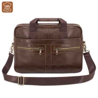 Realizado en auténtica piel, con asas y cinta para colgar en el hombro.Bolsillos exteriores con cierre cremallera e interior acolchado.Cada pieza en bolsa individual